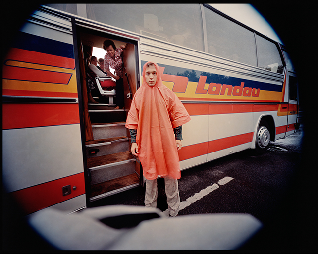 German tour bus and self-portrait, Bergen-Belsen concentration camp, near Hannover, Germany, 1981