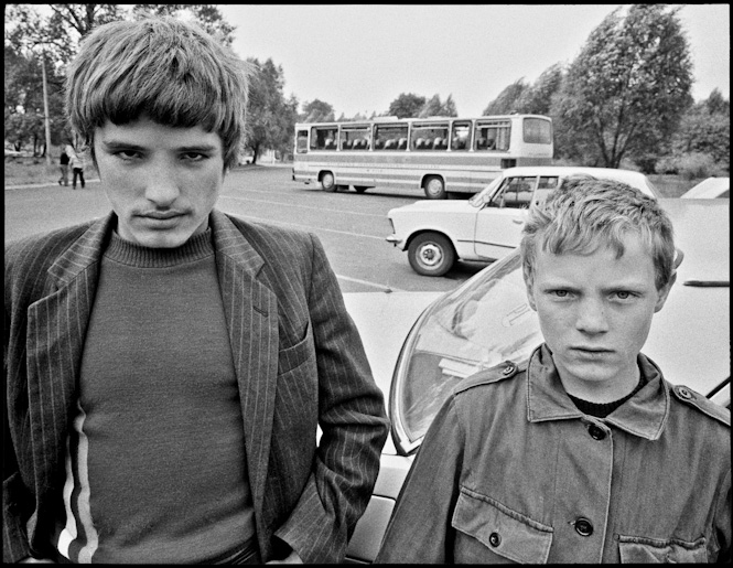 Polish tourists, parking lot, Auschwitz l concentration camp, near Oswiecim, Poland