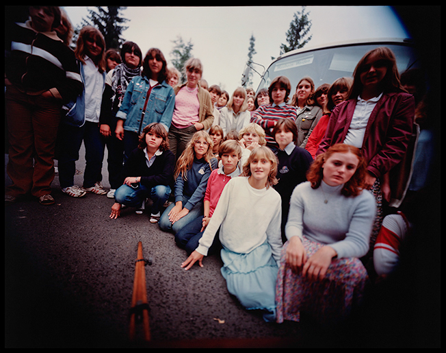 German students on field trip, Flossenbürg concentration camp, near Bayreuth, Germany, 1981