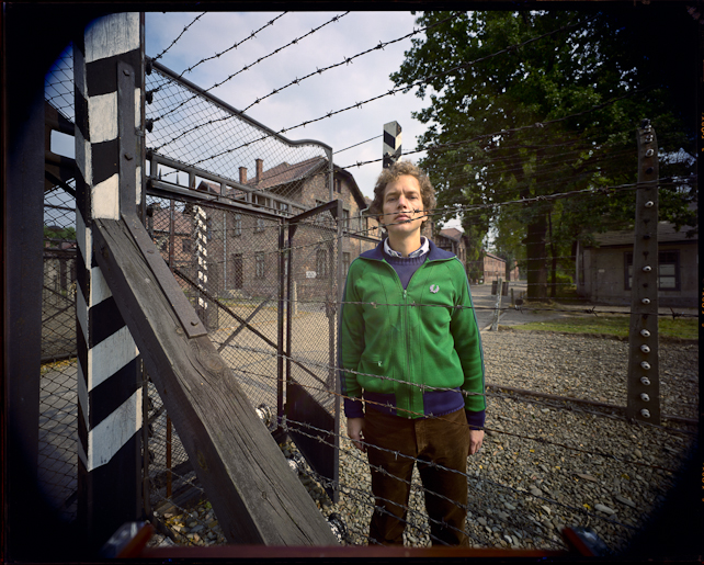 Self-Portrait at entrance to Auschwitz l, Oswiecim, Poland, 1983